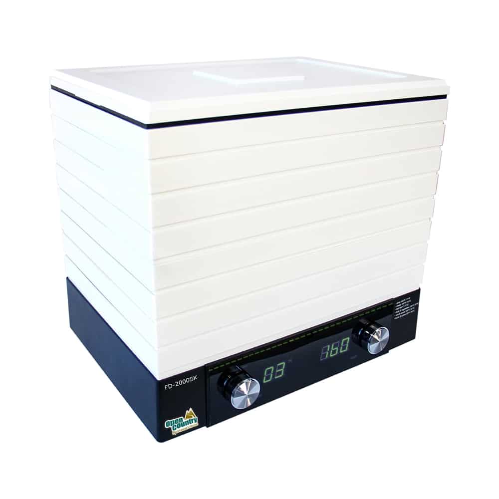 Der Open Country Dörrautomat ist eine preisgünstige Option mit digitalem Bedienfeld und 24-Stunden-Auto-Abschaltfunktion. Seine 530W Leistung und der einstellbare Thermostat (35-71°C) sorgen für präzises Trocknen verschiedener Lebensmittel.